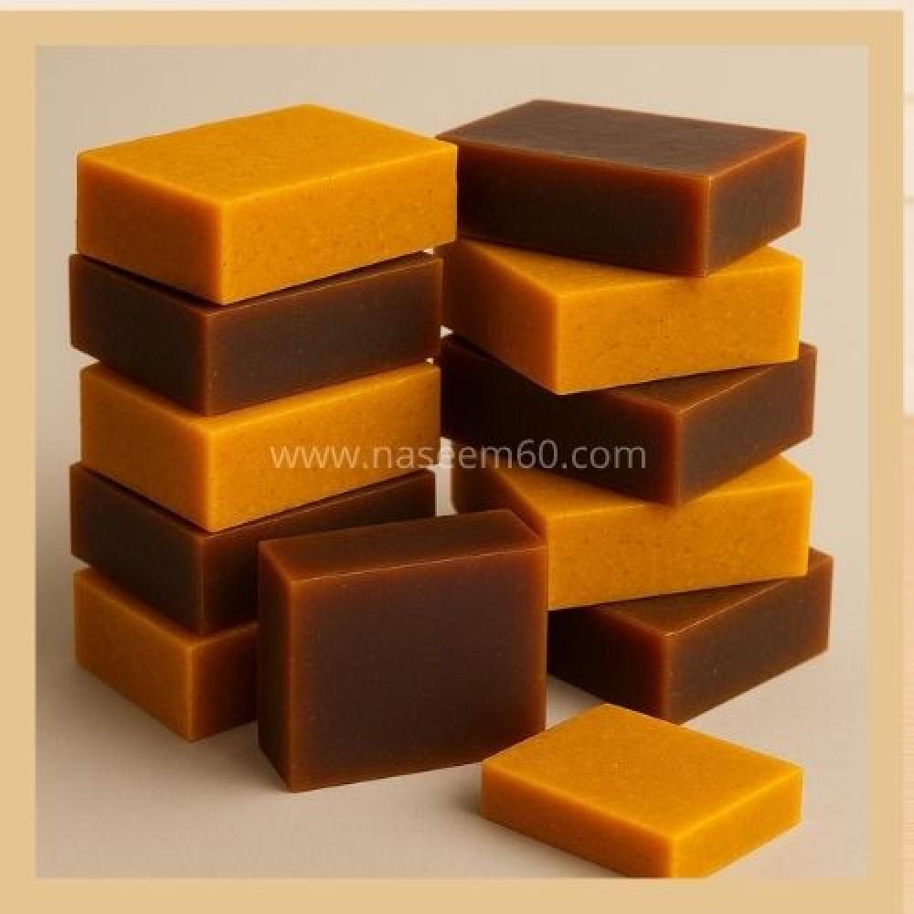 مصنوع من الجلسرين مضاف له زبدة الشيا و مسحوق المر و الكركم .